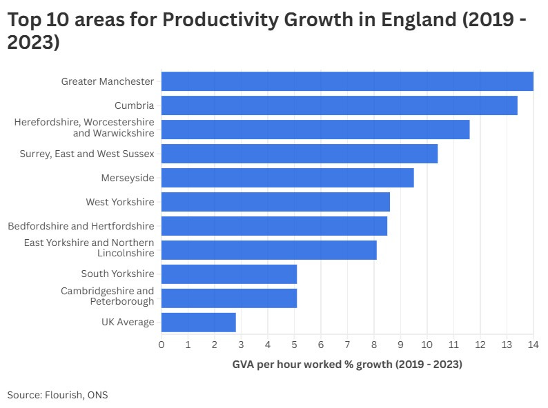 Productivity improvements are accelerating in Greater Manchester and many of these areas